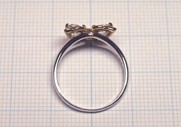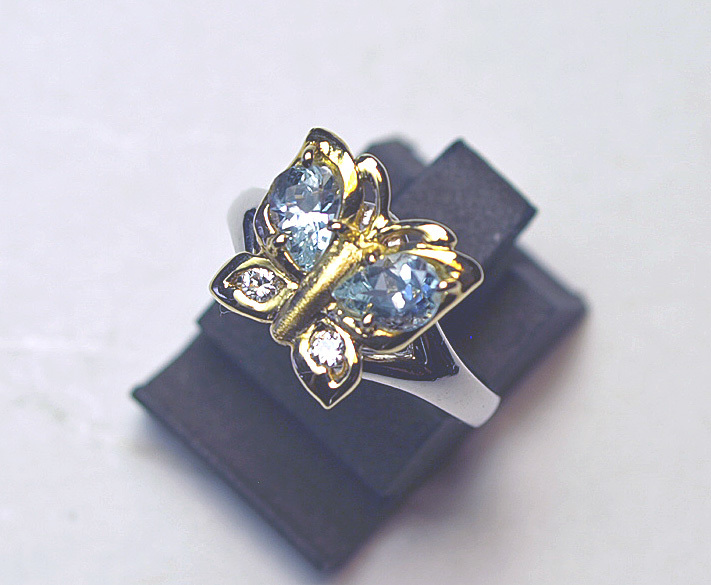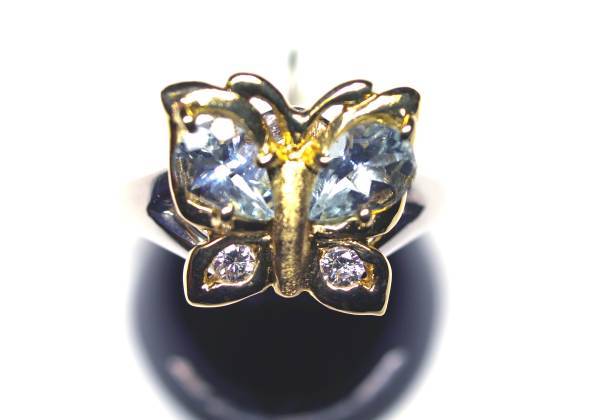 Pt900K18YGイエローゴールドアクアマリン蝶リングになります。