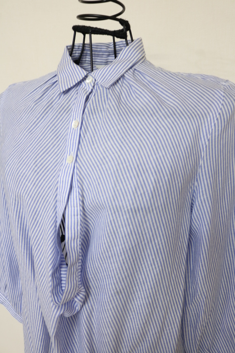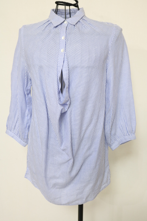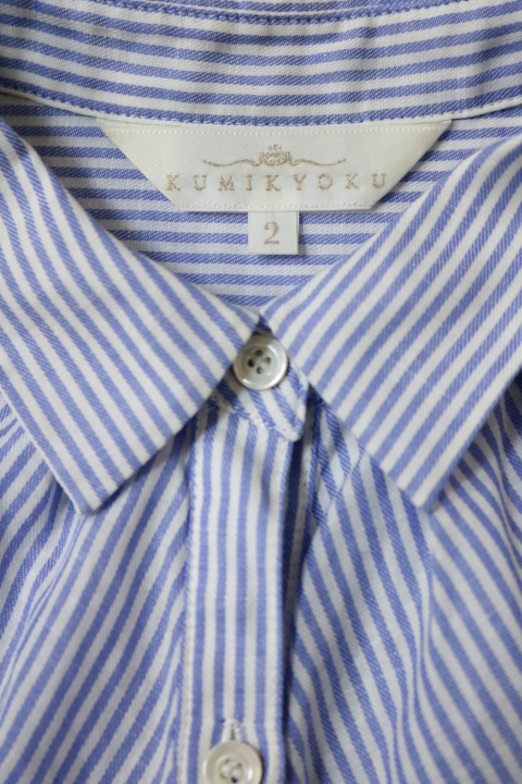 【超美品】☆組曲KUMIKYOKUクミキョク:ドレープデザイン綿×麻ストライプシャツ