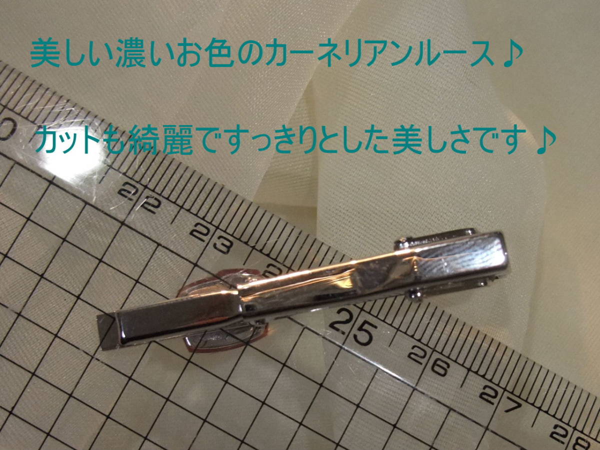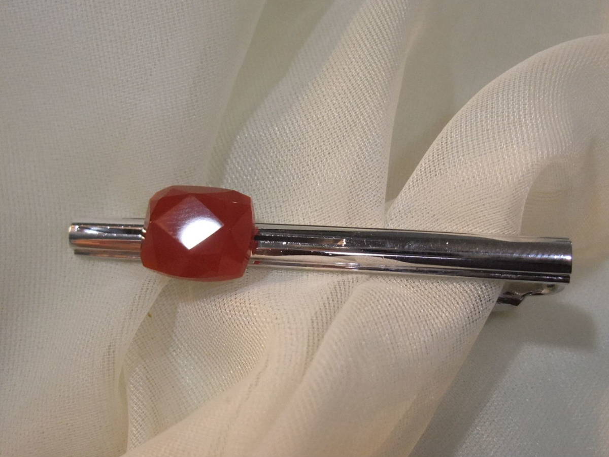 綺麗!鮮やか色のカーネリアン天然石ルース付レトロ♪シルバーカラーSilvercolorビンテージタイバーネクタイピン♪レトロビンテージ☆122⑧