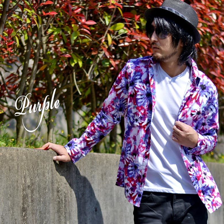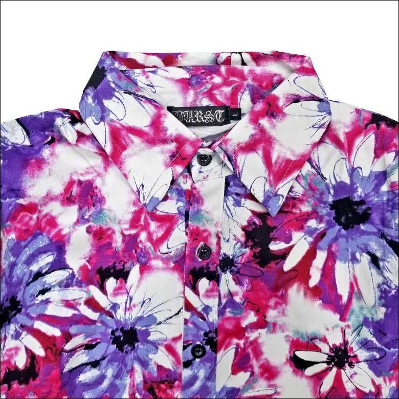 【閉店セール】【BURST】ラグジュアリー 襟 ワイヤー入り 花総柄 シャツ 花柄シャツ buj-0026新品パープルM