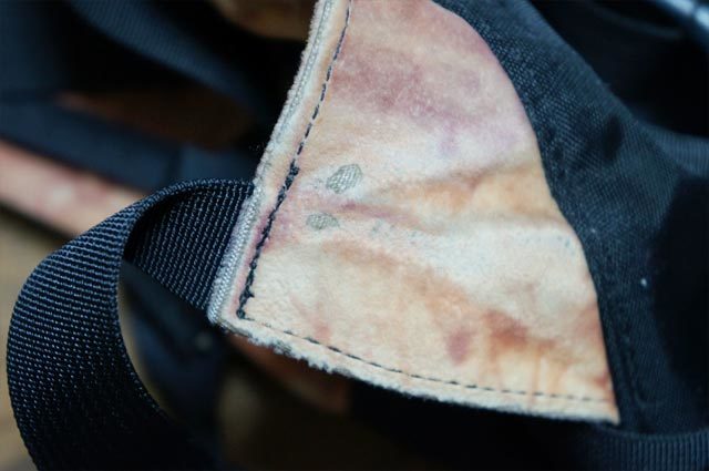 Made in USAです。状態は全体的に汚れ・使用感・擦れあります。底面に擦れあります。ベルトの留め具に日焼けあります。