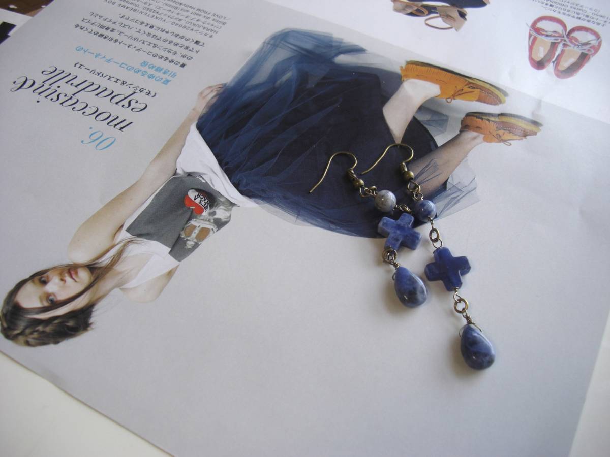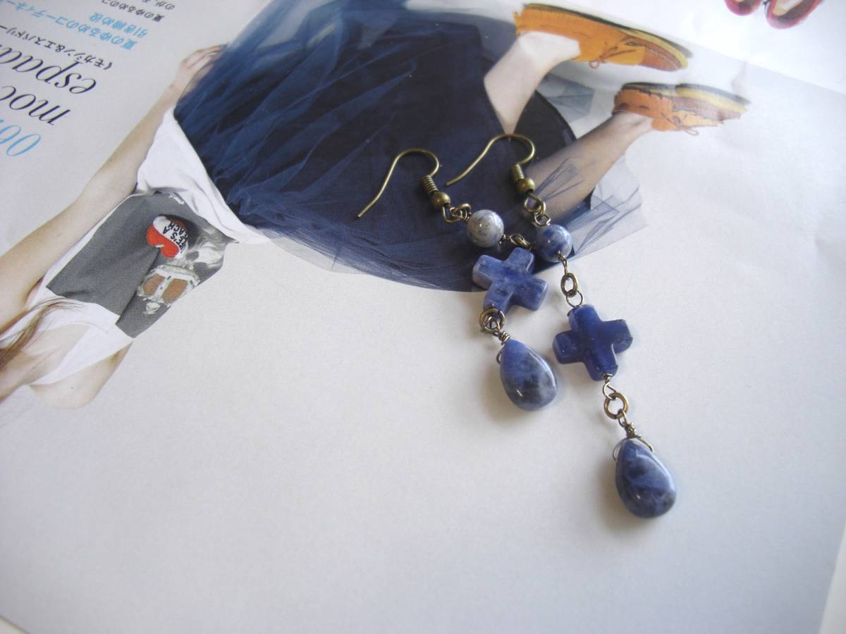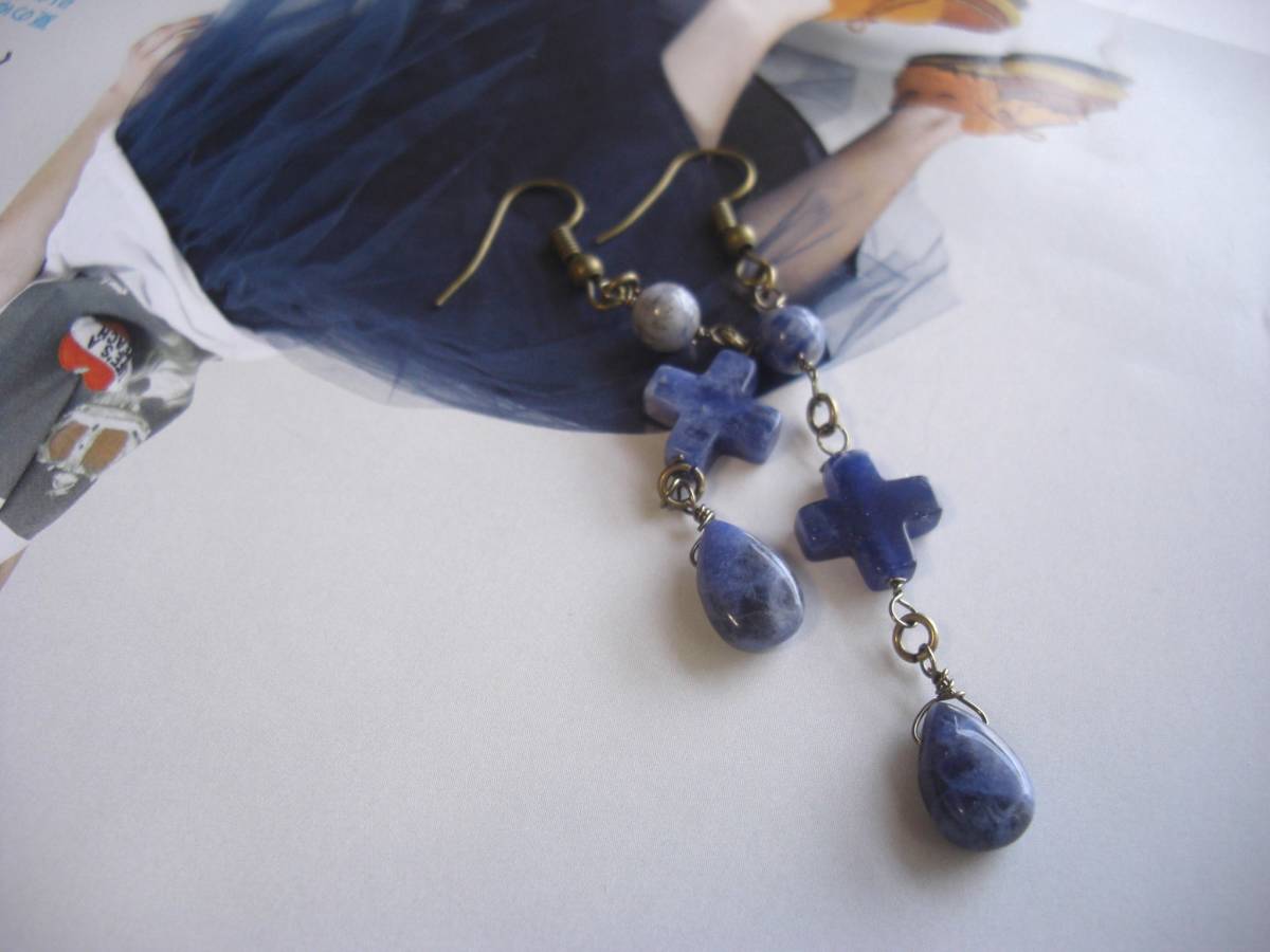 初夏のクローゼット・・シリーズです♪神秘的なラピスラズリとデニムラピスのピアスです♪6ミリの丸玉のデニムラピスは深い藍色やブルーグ レーや群青色が合わさってアートな表情です♪ラピスラズリのクロスをアクセントに合わせてトップは12ミリ×10ミリ位のペアシェイプのラピスラズリで す♪深い藍色が神秘的な表情です♪長さは全長7.5センチ位です♪イヤリングにも変更出来ます♪お揃いのネックレスやブレスレットも出品しています♪ シンプルで飽きのこないいつまでも着けられるデザインを考えて作りました!ハンドメイドをご理解頂いてノーク レーム、ノーリターンでお願いします