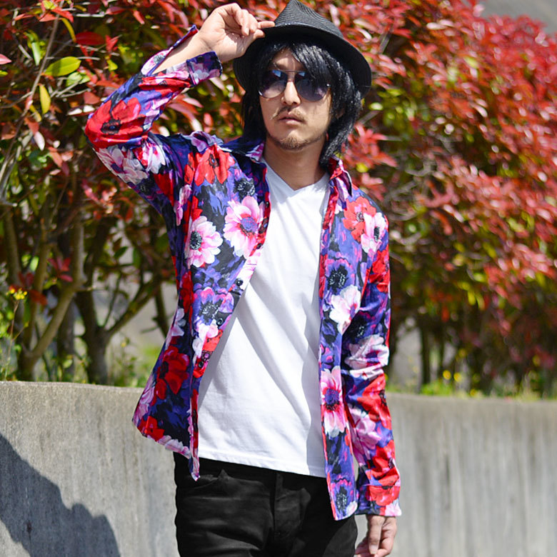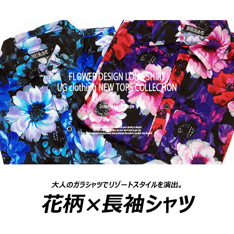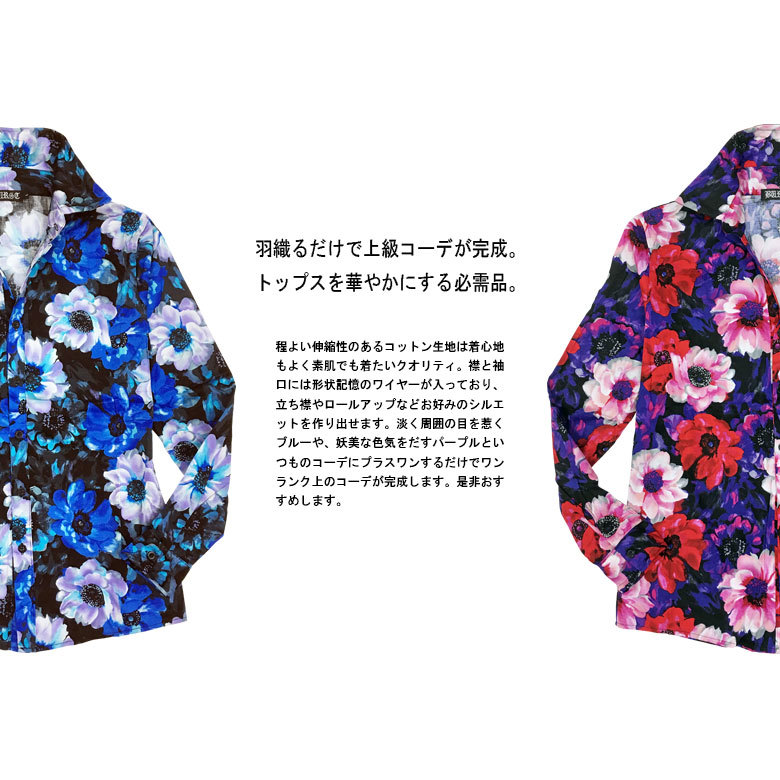 総柄/ボタニカル柄/花柄/襟ワイヤー/袖口ワイヤー/ガラシャツ