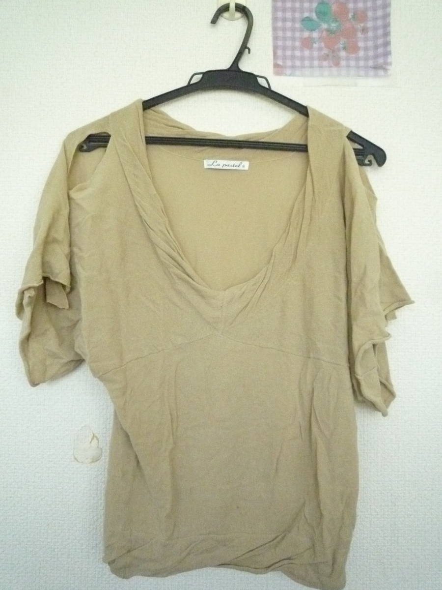 ★ 夏物 デザイン トップス ・紺色系 カシュクール ・ベージュ系 背中オープン ・ベージュ系 オープンショルダー 3点セット