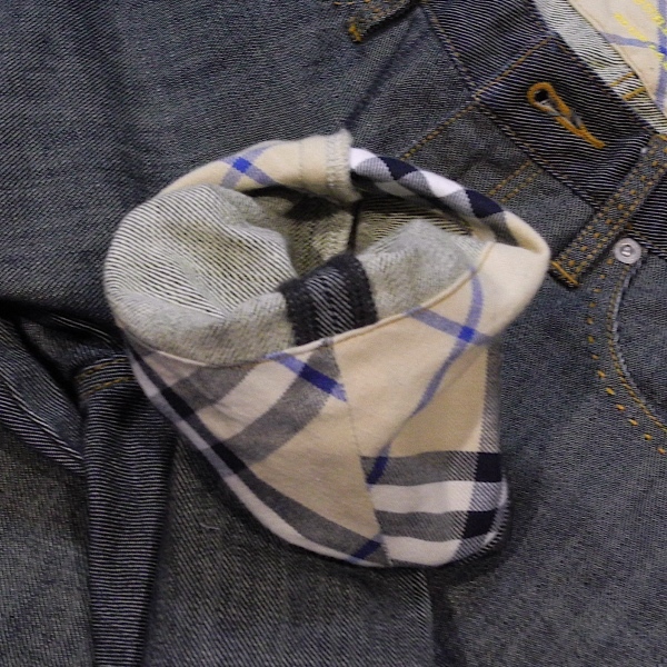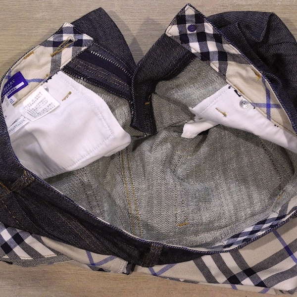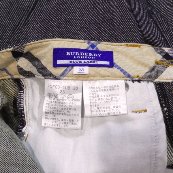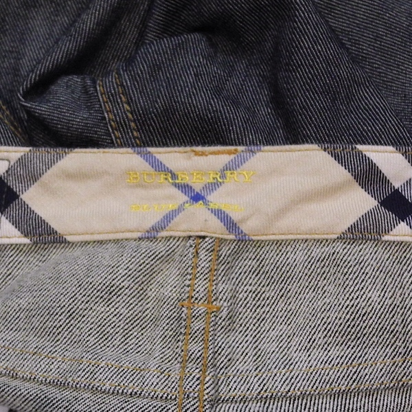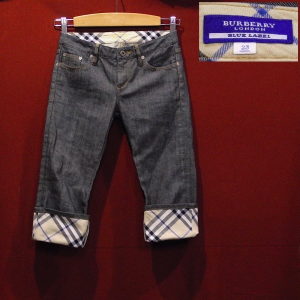 バーバリー ブルーレーベル デザイン 7部丈 ロールアップ デニム パンツ チェック柄 紺 / グレー 23 美品