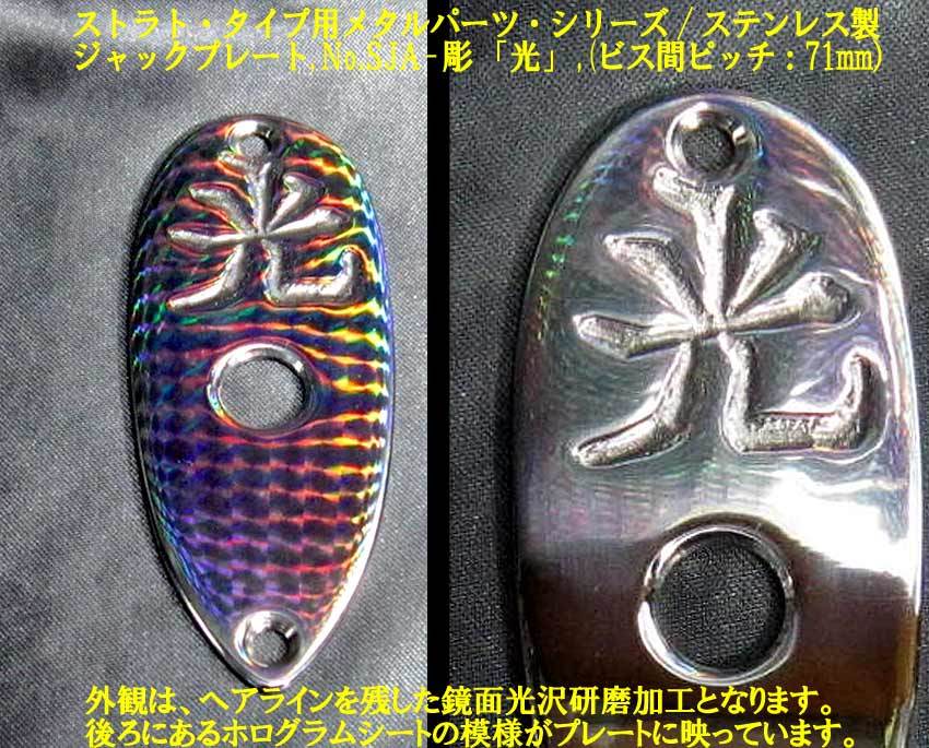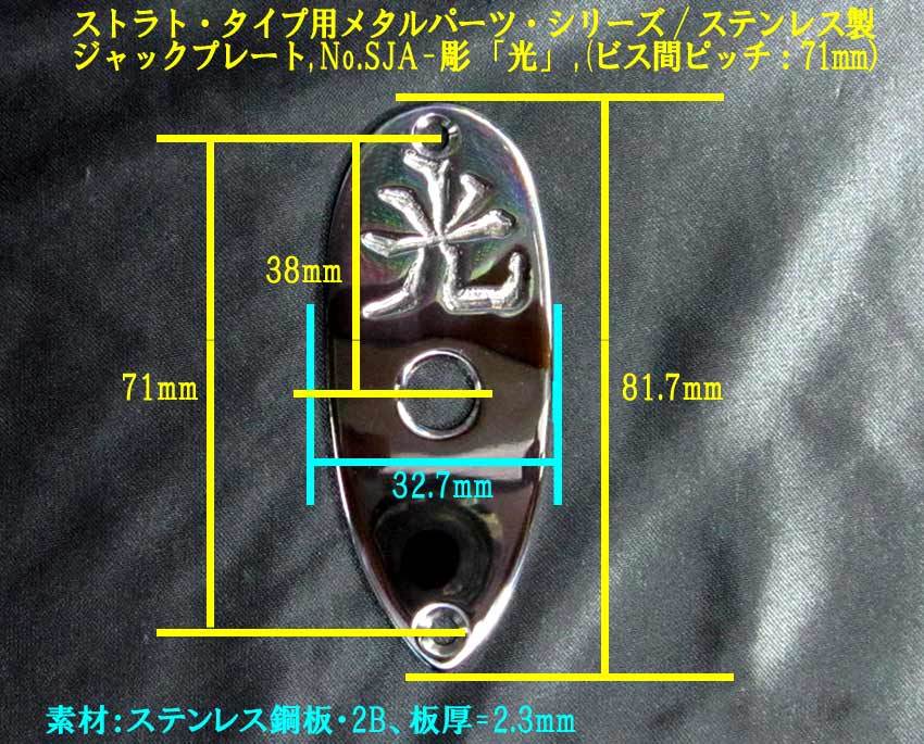 *手作り品 ストラト用 ジャック・プレート / 「光」彫金分 ステンレス製:板厚2.3mm 1枚出品 (ビス間ピッチ:71mm,No.SJA-38型:彫「光」