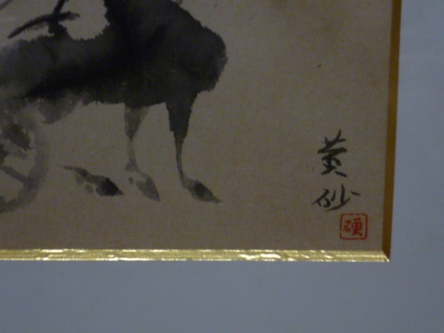 日本美術院 小山硬 「黄 砂」水墨 共シール 名古屋画廊シール