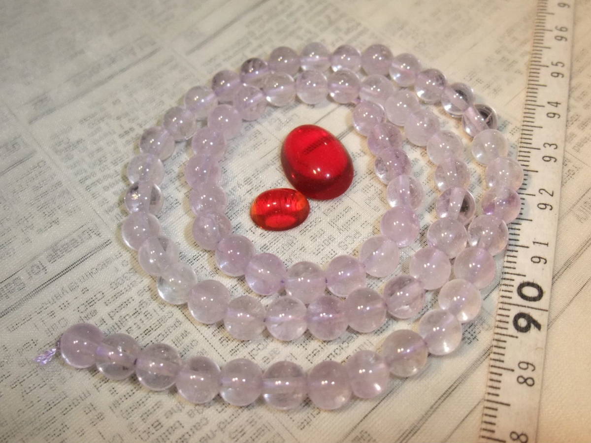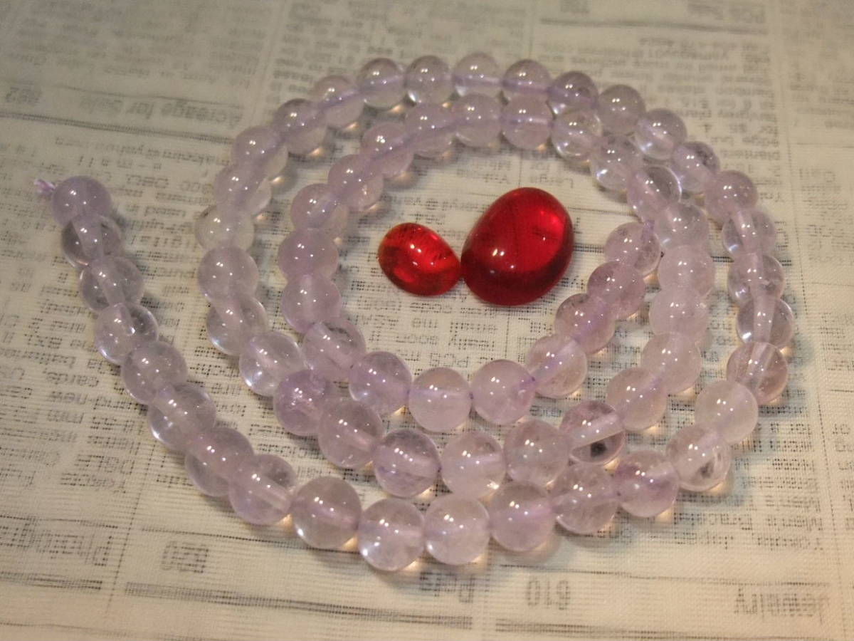 ラベンダーアメジスト紫水晶高品質40cmとカボッションセット☆☆薄紫の美しいラベンダー色のアメジストと古い日本のビンテージグラス☆73⑧