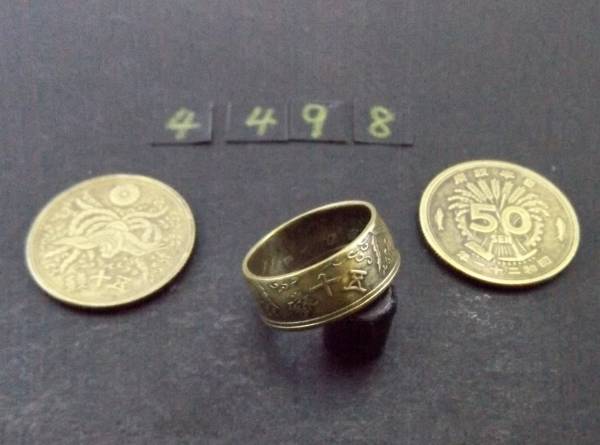 9号  コインリング  大型50銭黄銅貨使用  ハンドメイド手作り指輪  1点物です(4498)送料無料  金貨ではありません