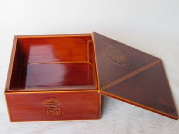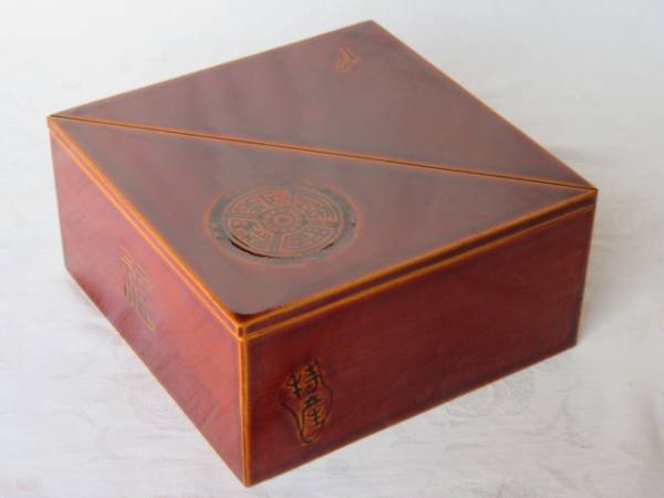 飛騨春慶塗の;菓子器です。 サイズは16.5㎝×16.5㎝×8㎝です。 箱はありません。