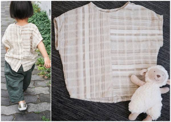 練色/ベージュ ストライプ★ キッズ服/子ども服 【綿麻】半袖ブラウス/半袖シャツ★前後リバーシブル●男女兼用● 100cm