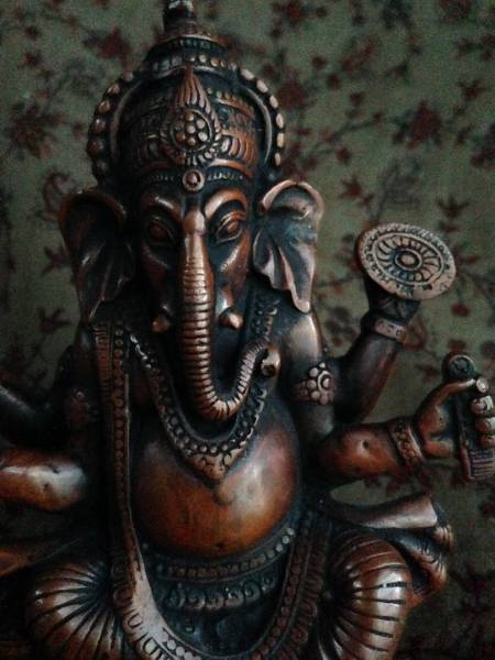 卍仏教美術 И銅製 『歓喜天 ガネーシャ 座像』 インド 仏像 F13 | ||||