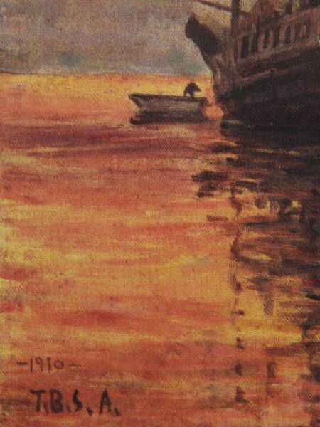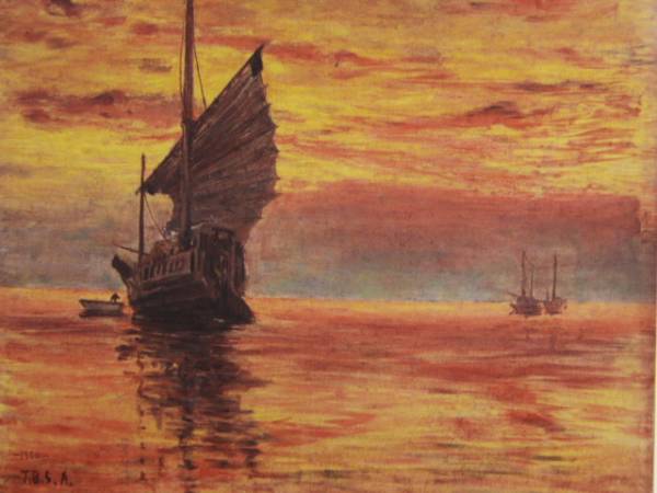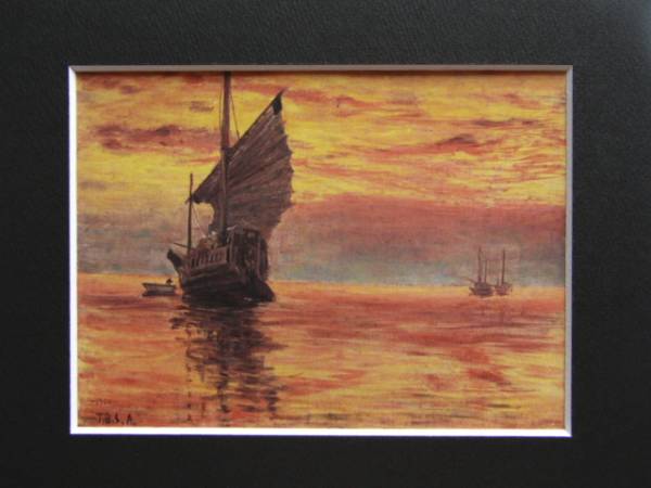 青木繁、夕焼けの海、希少画集画、新品額装付、状態良好、送料無料、salt