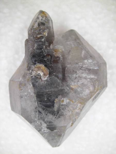 ・珍しいことに、黒い両剣水晶を、透明な周りの水晶が完全にくわえ込んでいます。