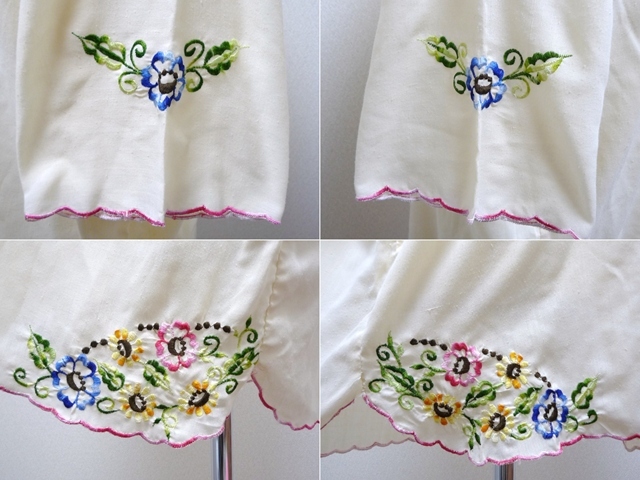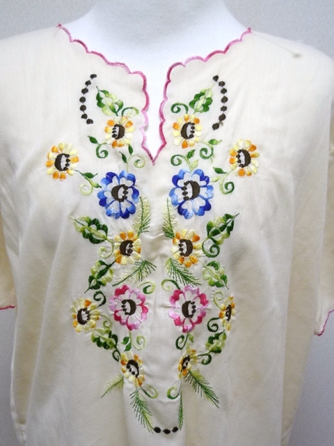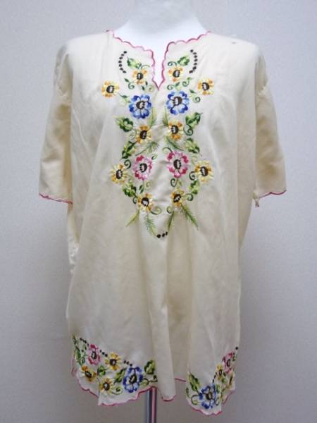 70s 花柄刺繍 チュニック 半袖シャツ ビンテージ アメリカ古着 M~L位 レトロ レディース