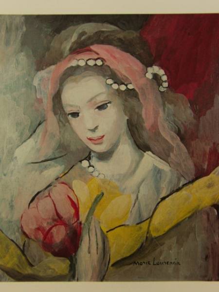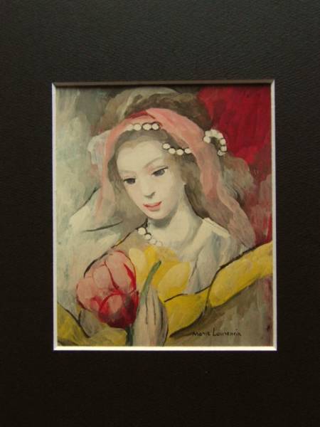 ローランサン、チューリップを持つ婦人、希少画集画、新品額装付、mai