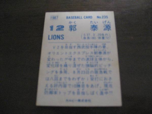 | ■カルビー1987年/No235郭泰源/西武ライオンズ | ||