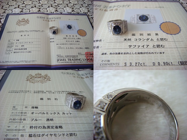 | ご覧頂きましてありがとうございます! 豪華な造りのサファイヤ&ダイヤモンド幅広リングです。サイズは約16です。 プラチナ製です。Pt900の刻印入り。 サファイヤは3,27カラット。ダイヤは0,90カラットです。 重さは約17,0gです。鑑別書付き。 新品のケースに入れてお届けいたします。 追加画像がありますのでパソコンでご確認ください。 宝石との出会いは一期一会です。『いいな』と思ったら是非、身につけてあげて下さい。きっと宝石も喜ぶことでしょう! 宝石は決して貴女を裏切りません。身につけた貴女を守ってくれることでしょう。 いつも頑張っている自分へのご褒美にいかがでしょうか? 良いものをひとつお持ち下さい。一生物のジュエリーとなります。高額商品ですので、 実際に現品をご覧になられることをお勧めいたします。 画像での判断は難しいと思いますが、落札後の返品、クレーム等の無きよう、ご自分の自己責任においてご入札下さい。 モニター、パソコン、カメラによって色や感じ方が変わりますのでご注意下さい。 商品についてはコレクター、質屋さん、お客様の委託品が中心ですので、ご質問の答えが遅くなる事がありますがご了承下さい。 商品説明につきましてはすべてをお知らせできませんので、質問にてお願いいたします。 基本的にはUSED品ですので、その点を十分にご理解の上ご入札下さい。 途中で出品を取り下げる場合もありますがご了承下さい。 尚、トラブル回避の為、申し訳ございませんが、新規の方及び評価によってはこちらで入札を削除させていただく場合もございますが、ご理解下さい。 メールの確認は夜になりますのでご連絡が遅くなることもありますがご了承願います。 品物にも人と同じように『こころ』があると思います。喜んでいただけることが私にとっても品物にとっても一番良いことだと思います。 『落札したけど気に入らなかった』ということが無いように十分にお考えになってからご入札下さい。 発送は宅配便を予定しております。また発送には2,3日かかる場合もございますが、ご了承願います。 お互いに気持ちよい取引のため、落札後3日以内のご連絡、5日以内のご入金頂けない場合は申し訳ございませんが取り消しさせていただきます。 落札金額より僅かですが『子ども虐待防止 オレンジリボン運動』へ寄付をさせていただきますがご了承お願いいたします。 | |