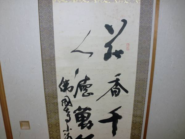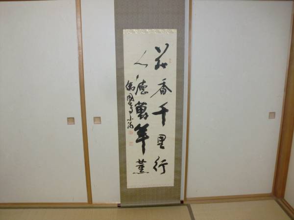 状態は、画像通りですが、古ーい作品にて 表装は綺麗ですが本紙全体に薄染みのあるアンテイークコンデイションです。(裏面にも染み等アリ)
