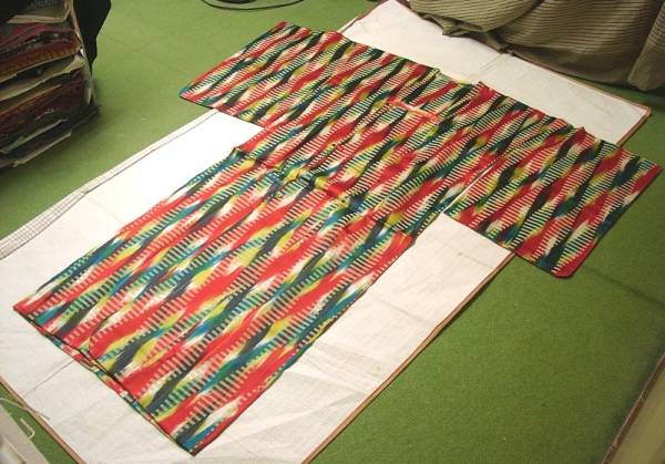 カラフルな立涌文と網目文の模様です。お洒落なデザインです。