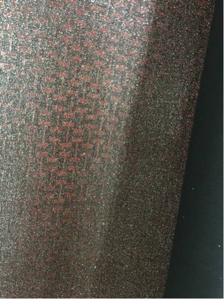 イギリス製高級グリッター生地、幅140cm×1m、T字柄プリント、お色は赤ベースのホログラムカラーで、光の当たり具合で色が変わる大変珍しい生地です。