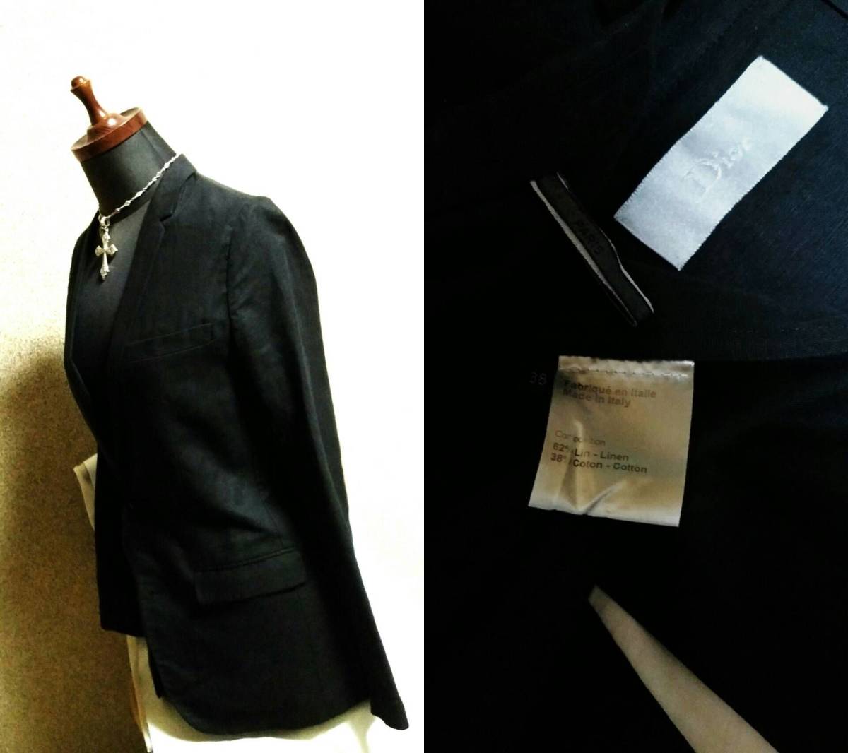 国内正規美 Dior Hommeディオールオム ナローラペルカジュアルジャケット黒 38 スーツ 唯一の薄手テーラードコットン ブラック 10H メンズ
