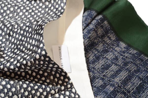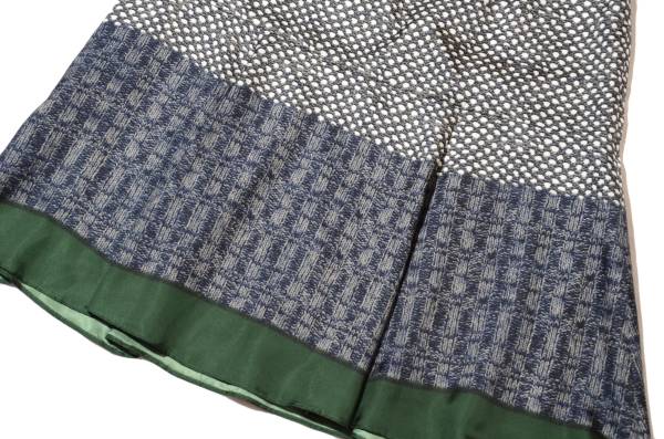 異なるニット柄、裾は深緑色プリントの