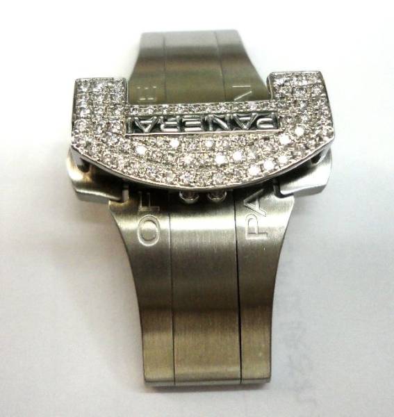パネライ ルミノールマリーナ Dバックルに天然ダイヤモンドをセッティング致します。 | ||