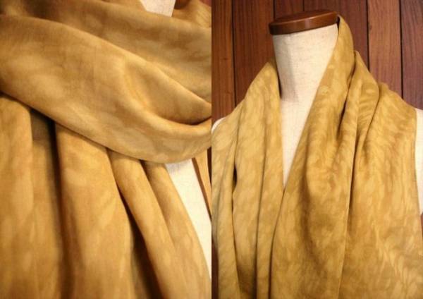 マスタード からし色 キャメル イエローベージュ レオパード柄はプリントではなく、ジャガード織込み柄 綿100% ワイルドなイメージはなくて、風に散る花びらのようなエレガントシックな印象の柄 光の当たり方や見る角度によって柄が浮き出て見えるおしゃれな生地です。 ガーゼ調の柔らかな風合い、ごわっと感、ちくっと感は全くございません。 サイドの端の始末は、細い三つ折りの3mm仕上げにしています。 デリケートタイプのコットントーションレースのミニタブつき ◆サイズ(平置き:約cm) 幅:35 × 173 ジャガード織は裏にも柄が出ていますので、表裏を気にせずにお使いいただけます。 襟もとの差し色に、装いのアクセントとしてどうぞ♪ 気に入っていただけたら嬉しいです。 ※色違いもございます。 ※画像は販売済みのものです。サンプルとしてご覧くださいませ。 | ||||