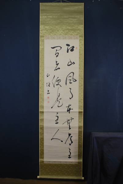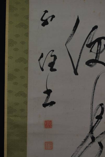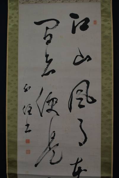 【作品状態】 本紙は紙本肉筆です。本紙は薄汚れ、全体に多数の糊シミ、汚れシミ、折れ、巻シワなどあります。表装は絹表装で概ね良好です。巻裏に多数の汚れシミあります。