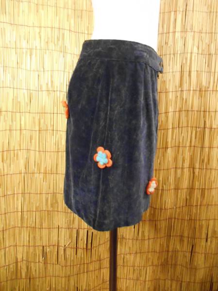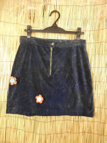②新品★薄めベロア素材★フェルトフラワー付き★ミニスカート