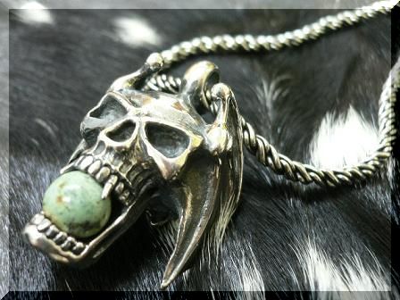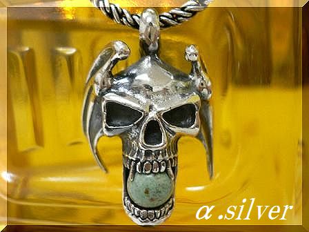 シルバー925純銀 天然石ターコイズ付スカル髑髏 デ-モン ペンダント/α silver