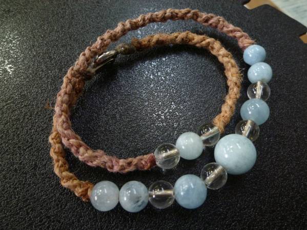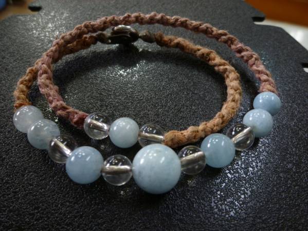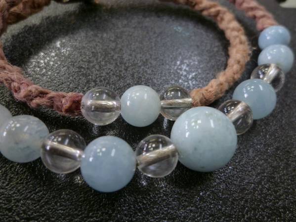 アクアマリン 水晶 2連マクラメ ブレスレット