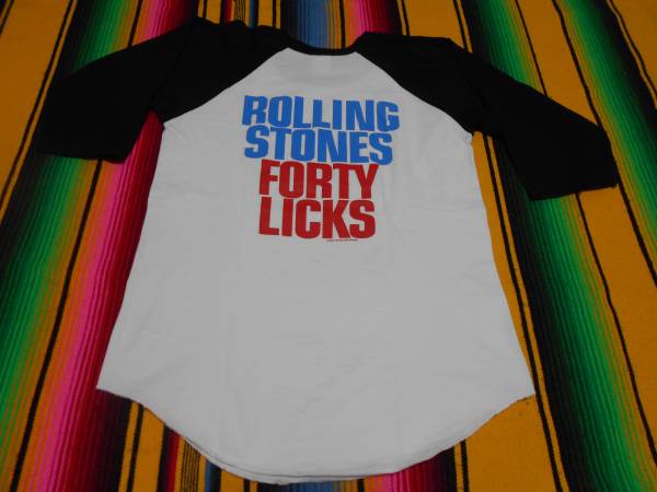 数あるSTONESアイテムの中でも、ホワイト × ブラック のラグランに映えるシンプルな ROLLING STONES レアカラーツートンデカール、 大型の STONES 「FORTY LICKS」 レタリングの入り方が尋常では無く良い感じ