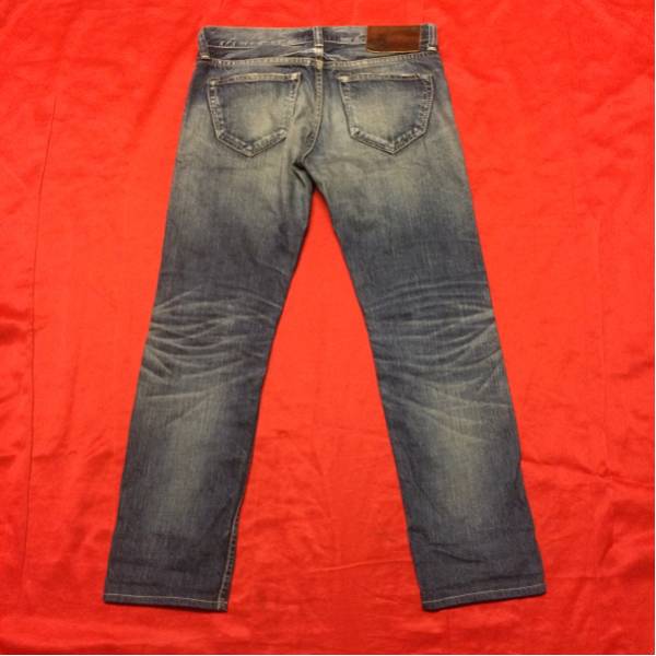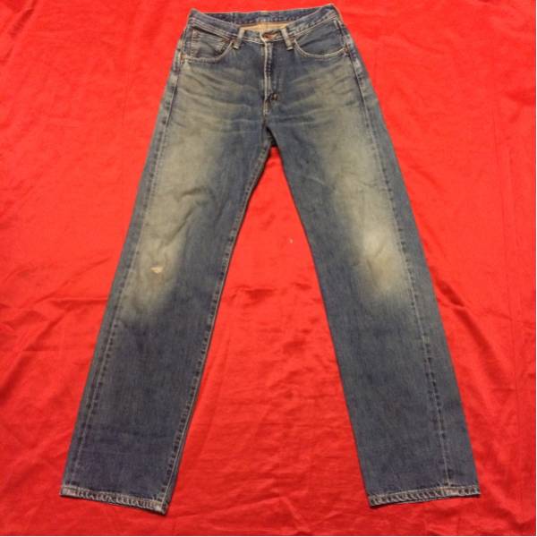一般的な使用感・色落ちがあり、ポケット口やジップの被せなどに擦れが見られます。お尻の辺りに数ヶ所シミ、右膝に3cmほどのダメージがあります。(画像参照) ※色落ちやダメージは元々のビンテージ加工によるものが殆どです。神経質な方はご遠慮下さいませ。