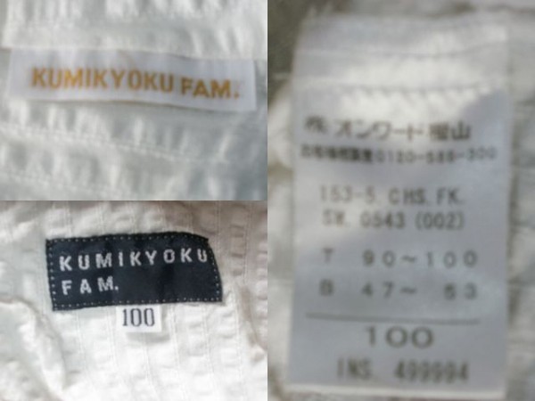 ・USED キッズ KUMIKYOKU FAM ワンピース サイズ100 白色です。