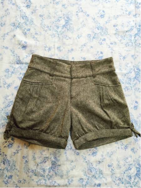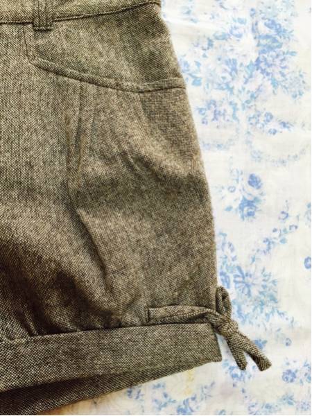 サイズはMで、平置きでウエスト約35cm、股下約12cm、股上約25cmです。