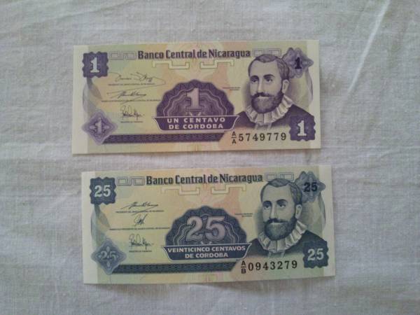ニカラグア 紙幣 2枚セット 1・25センタボ コルドバ 美品
