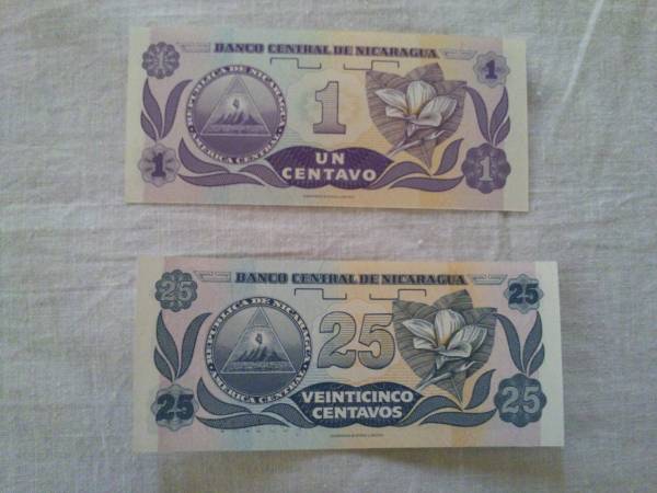 ニカラグア 紙幣 2枚セット 1・25 センタボコルドバ 美品 です。