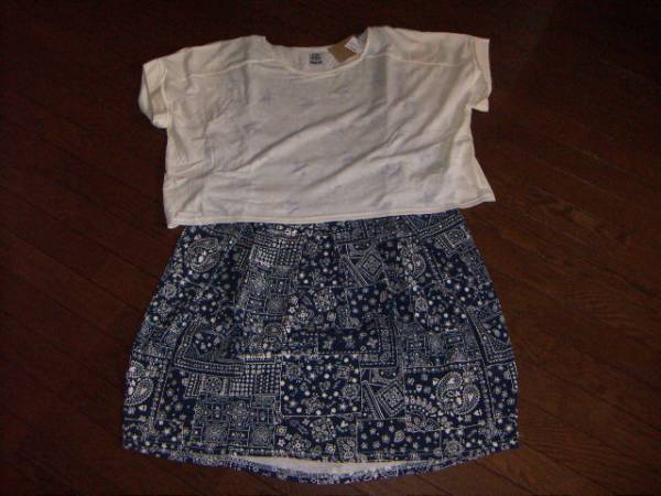 スカート部分はネイビーのバンダナ柄の重ね着風ワンピースです。