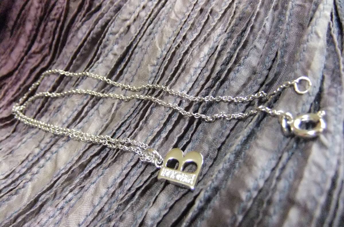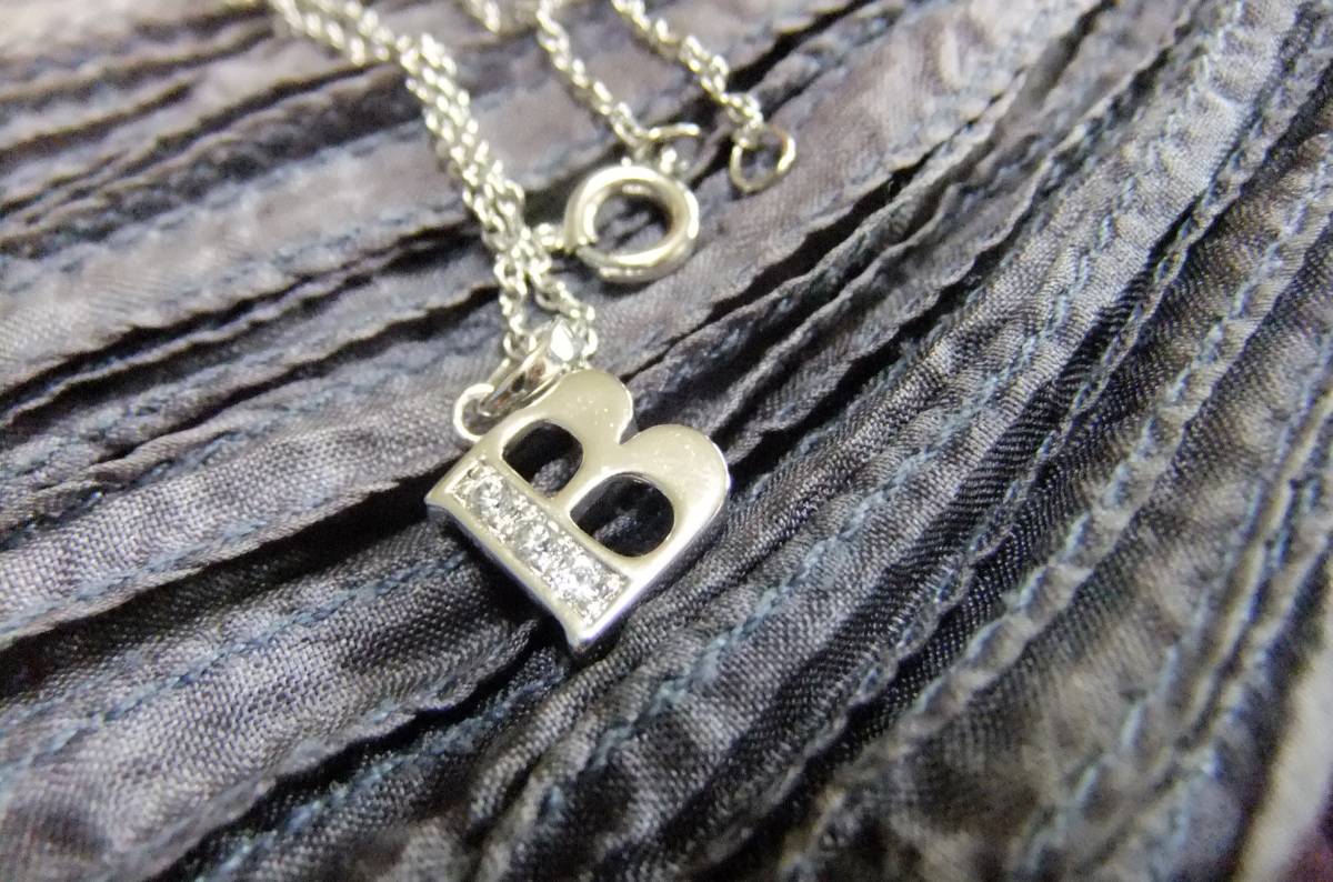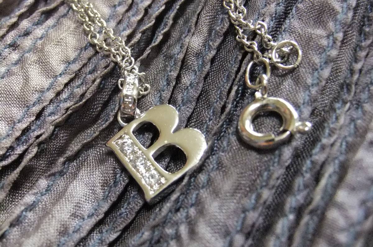 比較的最近の品かと思われるクリアカラーストーンのアルファベット文字Bのネックレス。
