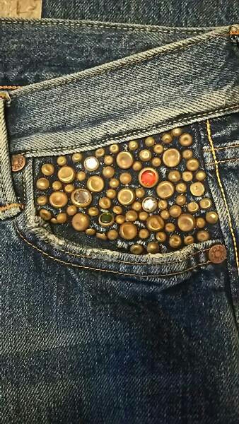 左側のポケットに スタッズとビーズがうってある洒落たデザインです。