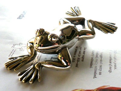 水面を飛行するカエルさんをデザインした立体ペンダントです。 |