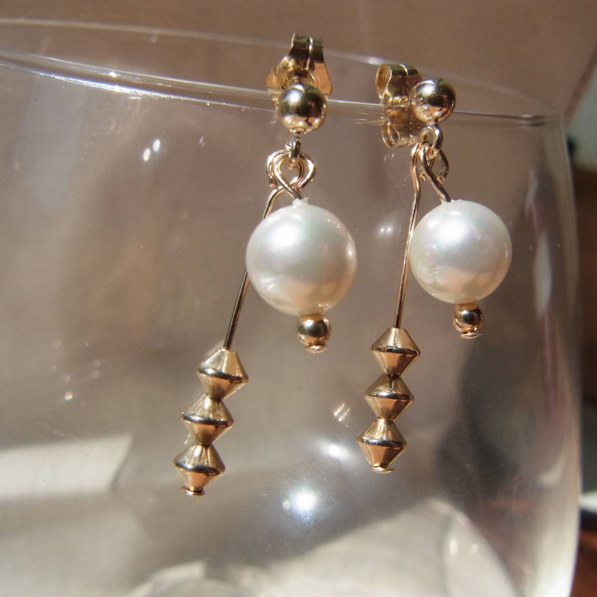 新品 パール x ゴールドビーズ ピアス 14KGF