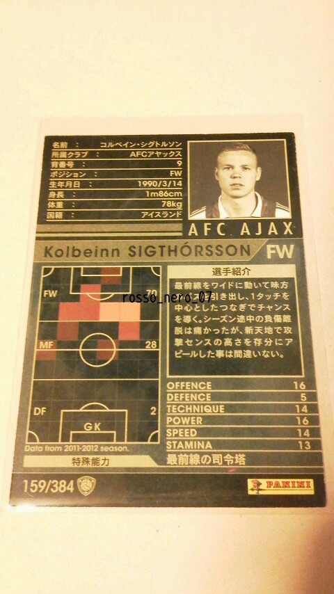 ☆WCCF2011-2012☆11-12☆159☆白☆コルベイン・シグトルソン☆AFCアヤックス☆Kolbeinn Sigthorsson☆AFC Ajax☆