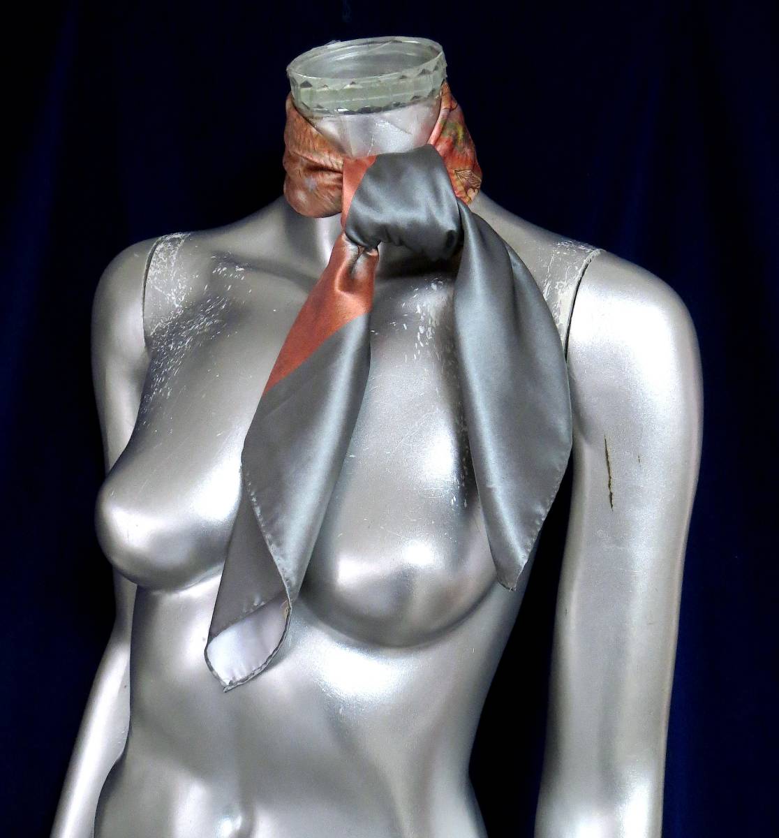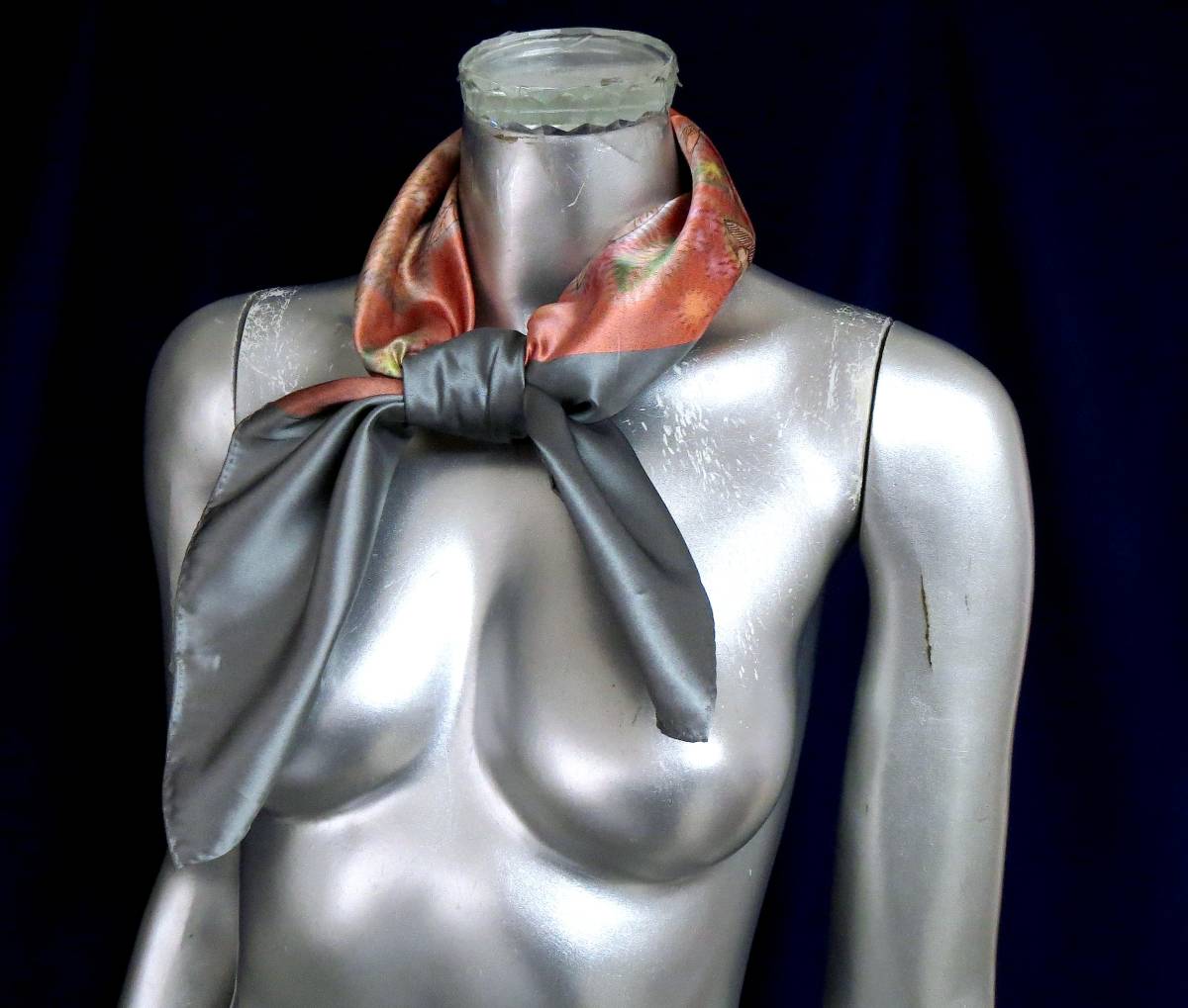 二点落札で送料無料! さんび シルバー ピンク系 グレー 和柄 スカーフ レディース 小物