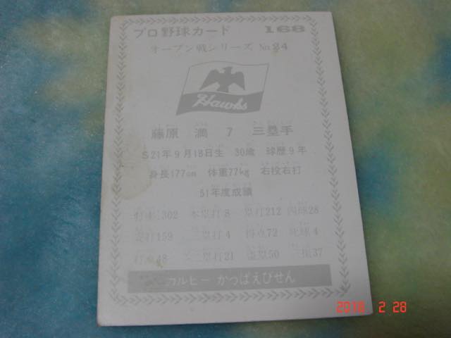 *カルビー '77年 プロ野球カード NO.168 (藤原/南海) 黒版*