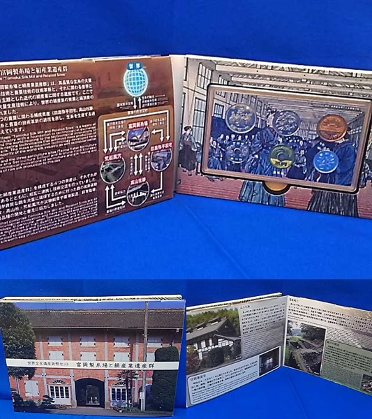 2015 平成27年 世界文化遺産貨幣セット(富岡製糸場と絹産業遺産群) ・この貨幣セットの特製ケースを広げると、明治5年 (1872年)の創業当初の富岡製糸場の様子を描いた 版画を基に、そのイメージを再現した立体模型(紙製) が飛び出す仕掛けになっています。 詳細:ミント貨幣 1円、5円、10円、50円、100円、500円×各1枚 =666円 ※・同梱の場合は、ご連絡下さい。 写真にてご判断ご入札宜しくお願い致します。 |