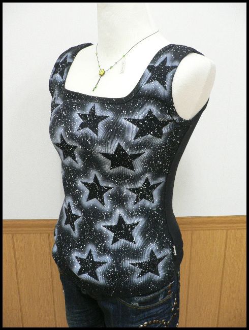 新品アウトレット品★Alphabet星柄スター シャドー プリント タンクトップ黒 Mサイズ/定価より50%OFF
