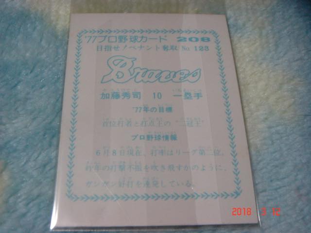 カルビー '77年 プロ野球カード 『目指せ!ペナント奪取』ハイナンバーカード NO.208 (加藤/阪急) 青版 美品
